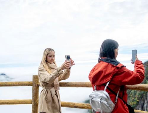 外国博主们不时停下脚步,沉浸于幅山水卷中,通过镜头记录下云海翻涌、山峰隐现的动人瞬间,向全球粉丝分享这份“行走在云端”的独特体验。