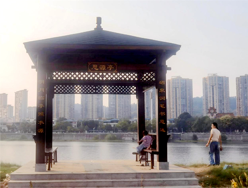 沿着温汤河漫步,“明月温汤”“古渠荣光”“河口华章”三个水文化展示板块以历史时间为轴线,通过石刻、雕塑、智慧触控等形式,构建起一条流动的“水文化故事线”。同时,以古李渠为核心,包含仿古桥、宣传栏、李将顺雕塑等打造的文化广场,成为市民了解宜春治水历史的重要窗口。