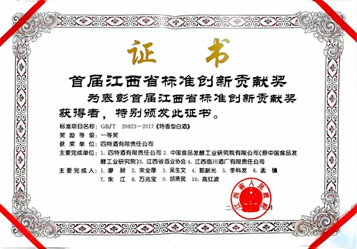 四特获评首届江西省标准创新贡献奖