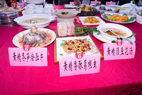 随着比赛进行,“黄精妃子笑”“山珍黄精老鸭汤”“黄精满船”等美食陆续呈现,香气四溢,令人垂涎。每一道菜肴都凝聚了厨师的细心、用心与匠心,带来视觉与味蕾的双重享受。