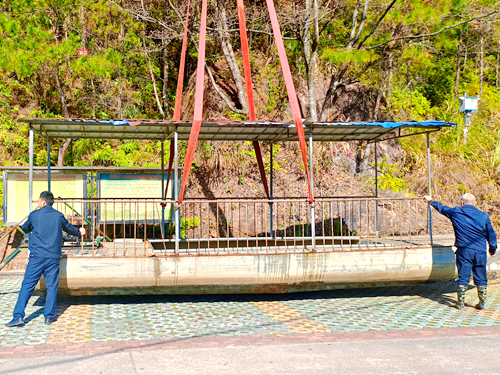 行动现场,执法人员首先划定安全区域、疏散无关人员、设置警示标识,随后调用专业起重设备,将违规载客船舶吊上岸,并拆除主机动力设备,彻底消除其航行能力。据悉,此类乡镇船舶未经正规检验,船体脆弱,缺乏救生、消防设施,极易引发安全事故。