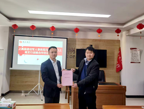 大江新闻讯 (通讯员黎颉)为积极响应国家普惠金融政策,扎实做好金融“五篇大文章”,进一步推动银政深度融合,11月28日上午,赣州银行上高支行与上高县退役军人事务局正式签署战略合作协议。
