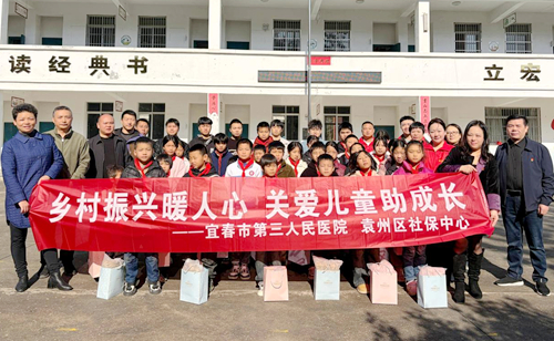 大江新闻讯 (通讯员马娟)为推进党建与乡村振兴深度融合,切实把党组织的关怀送到乡村儿童身边,12月1日,宜春市第三人民医院联合袁州区社保中心走进袁州区慈化镇新塘小学开展“乡村振兴暖人心 关爱儿童助成长”主题党日活动。
